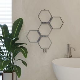 AEON’s Honeycomb towel rail is available in four heights: 580mm, 840mm, 1120mm and 1400mm and a range of lengths: 550mm (for the smallest model only) and 785mm. A choice of 3, 5, 7 or 9 hexagonal cells.